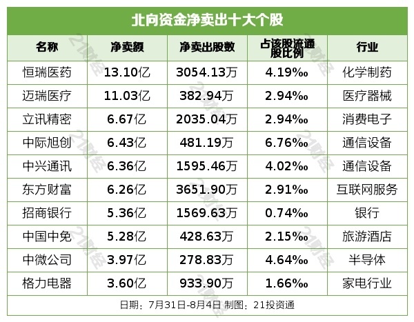 净买入宁德时间48.62亿元,净卖出恒瑞医药13.10亿元